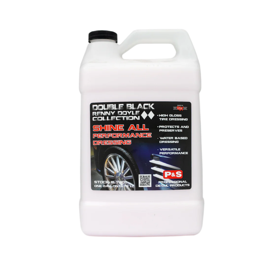Shine All truly outperforms competitive water based tire dressings. This exceptional product was built specifically for use as a high performance tire dressing. Perfect for use in carwashes, detail shops, rental fleets, etc. Although formulated for exterior use; Shine All may also be used as an interior dressing to condition, soften, preserve and protect all leather, rubber, vinyl and leather surfaces. Shine All produces a glossy finish.